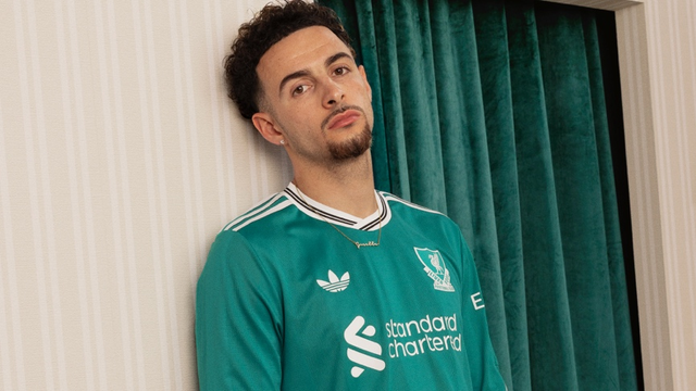 球衣以亮眼的海青色为主色调,灵感源自20世纪90年代至21世纪初阿迪达斯与利物浦的经典联名设计。为完整呈现复古美学,球衣还融入了1987-1992年间利物浦俱乐部的经典队徽,在唤起球迷怀旧情感的同时,亦注入鲜明的现代感。